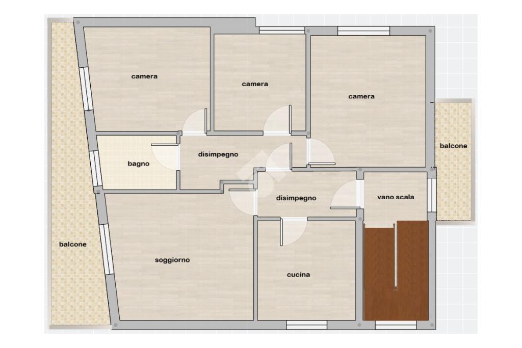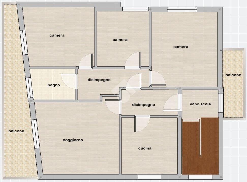 Dal terrazzo si accede al vano scala, con balcone di pertinenza, che porta agli appartamenti.