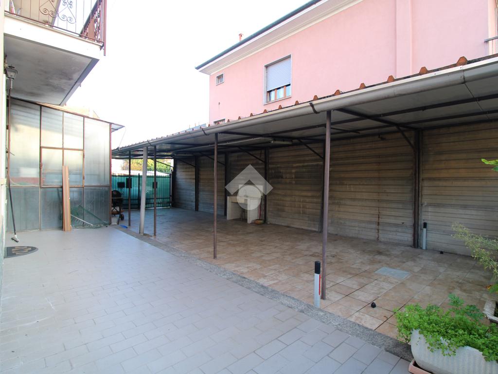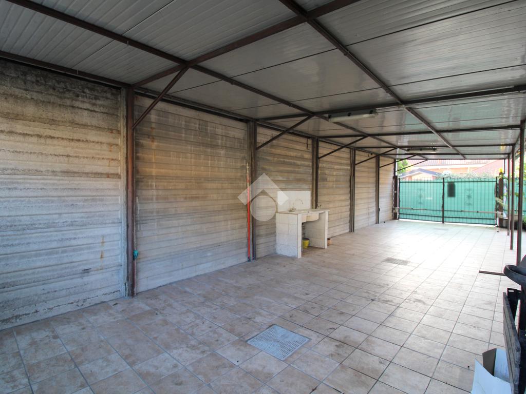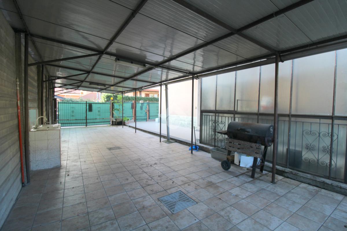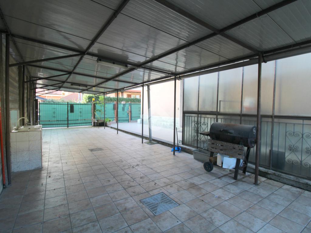 Al piano terreno troviamo un ampio terrazzo di circa 60 mq in parte coperto da una grande tettoia, sfruttabile per momenti di relax all'aperto oppure come doppio posto auto vista anche la presenza di due passi carrai.